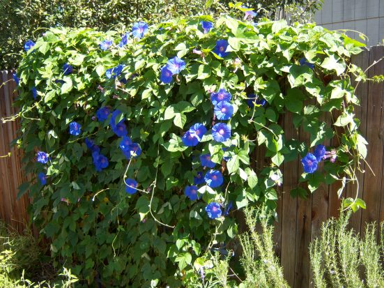 • Literally watching the garden grow. Who knew a morning glory could sprawl so far, so fast?