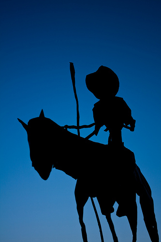 Into the backcountry of imagination. Urging us to look at the sketchy border between fantasy and reality. Posing the question, “What is madness and what is truth?” As Quixote/Cervantes asks: