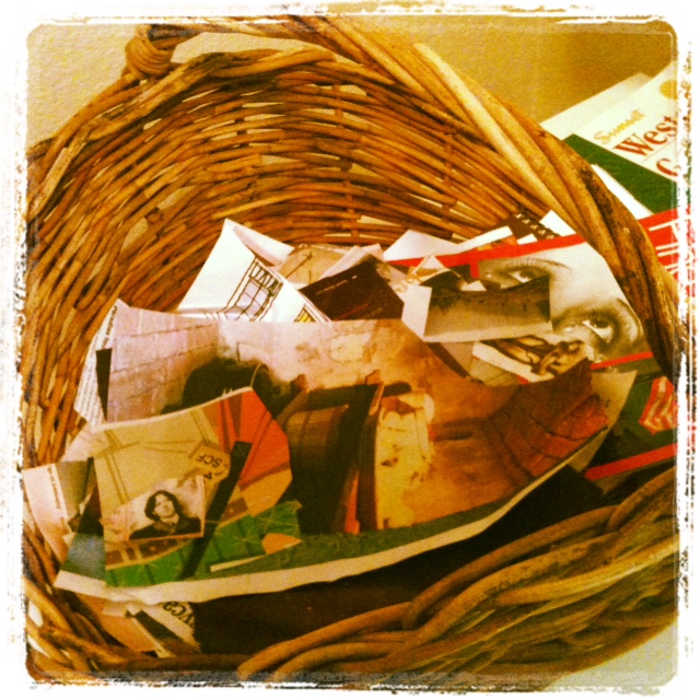 There’s space on top to plop things too, like this basket filled with images. (Lately I’m fascinated by the rough, textural, grainy quality of newspaper images.)