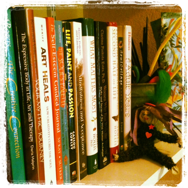 It all started late last summer, right before the women’s creative wisdom circle kicked off. I needed a space with a big table where we could spread out and play with all kinds of expressive art. I was mightily resisting going out to find it, though. I kept flashing back to my years of teaching, presenting, and facilitating: classes, workshops, seminars, conferences, groups. All the schlepping and hauling of materials. I just couldn’t face it again.