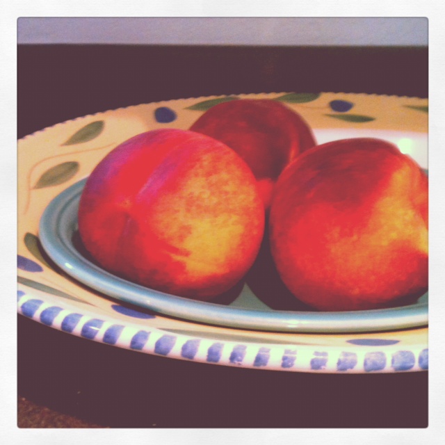 I snapped this photo a few weeks ago: the last local peaches of the season.