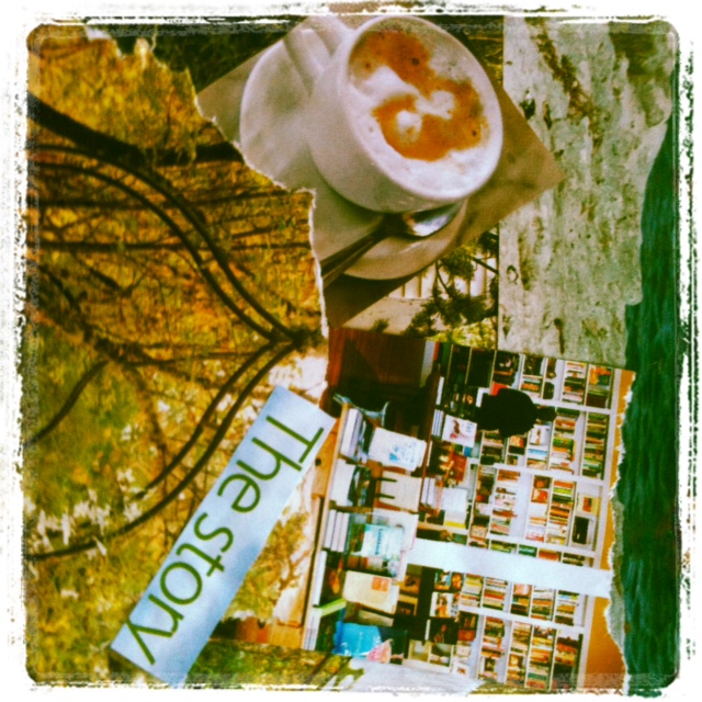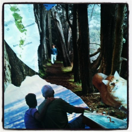 So over the Thanksgiving weekend, Dave and I decided to honor this next chapter of our lives together by making a relationship collage. It’s backed entirely by images of trees, many which you can no longer see. But the trees are there, in shades of light and dark.