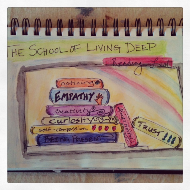What if there actually was a School of Living Deeply, taught by those wise ones who’ve been to the edge and back? I’d sign up in a precious heartbeat. Of course, tuition wouldn’t be cheap, but I’d be willing to pony up what they’re asking for: trust, empathy, noticing, being present, curiosity, creativity, self-compassion, and sensitivity.