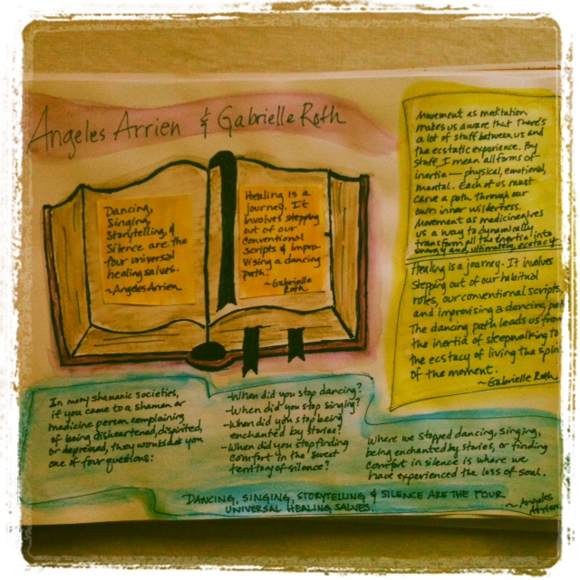 That really confused me, because I was so sure I knew who’d said it. So I did a bit of sleuthing, and mystery solved. Turns out Angeles Arrien wrote the preface for one of Gabrielle Roth’s books, and that’s how it got linked to her name.