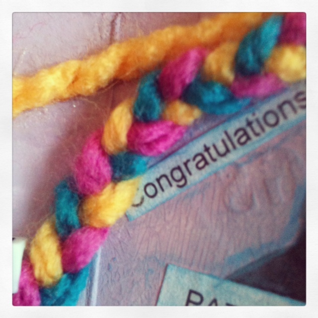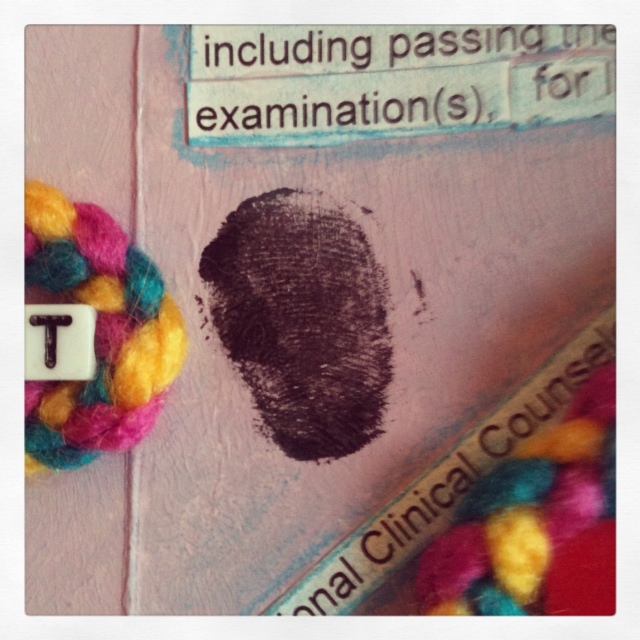 These metaphors become powerful symbols when you include them in your ritual. I look at my shrine and feel strength in the symbol of the mountain I climbed and descended (made by cutting out the exam results from each test I passed). photo-228And I tear up a little when I touch the three interwoven threads that came together as a result of climbing this mountain. photo-229