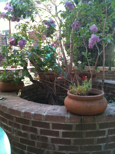We sat next to a blooming lilac…